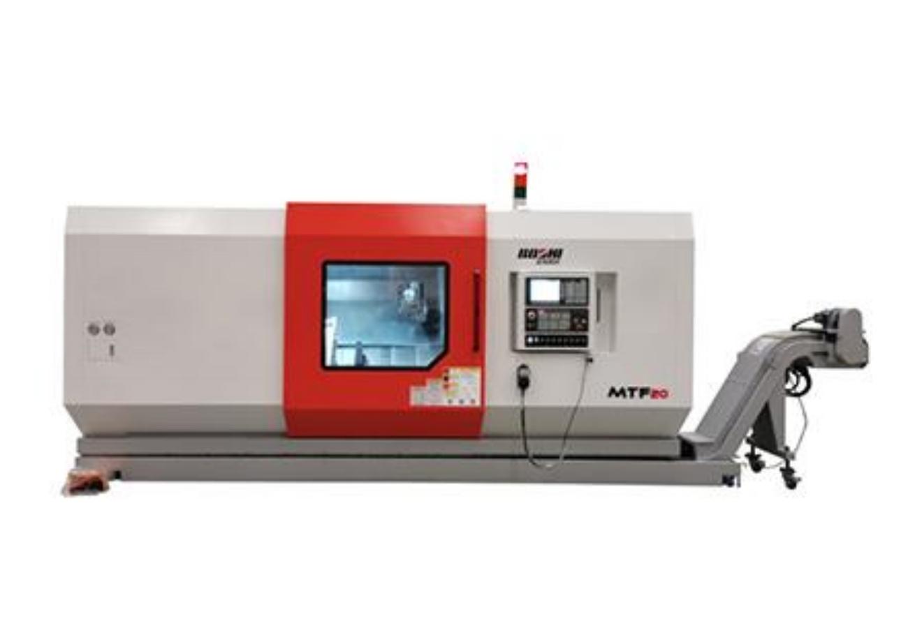MTF20 dual spindle dual tool holder CNC lathe, the machine tool adopts dual spindle, dual tool holders in the column layout, wide number of CNC control system, can realize dual spindle, dual tool holders at the same time turning processing. The Z feed of the machine tool can complete the two-way clamping of the workpiece, realize the positive and negative machining of the workpiece, and complete all the turning processing of the workpiece under one clamping, which can be widely applied to the processing requirements of new energy, automobile, light industry and other industries.