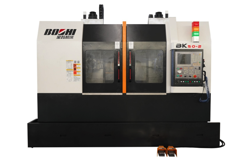 BK50-2 is a special purpose machine designed for flange producing sector. It is controlled by GSK 980TTC controller and features double spindles, double turrets and independent two channels for different wok machining. It is mainly used for roughing and semifinishing flanges of over 10 kg weight, motor flanges, motor cases and other flanges, discs, sleeves and short shafts which are difficult to set.
